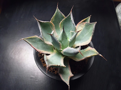 雷神系だとは思う。 粉っぽいような葉でカッコイイ斑入りのアガベです。