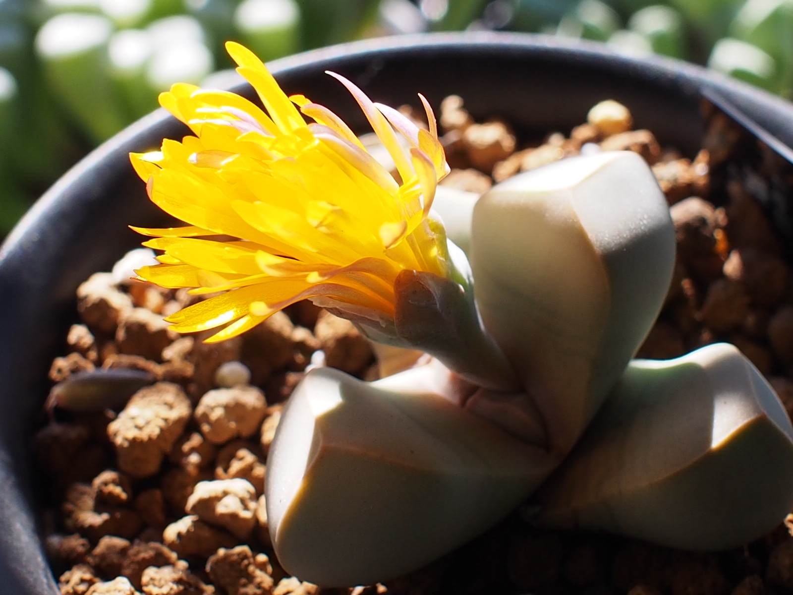昼咲きのメセンって、タイミング悪いと中々ちゃんと開いたとこ見れないんで休日咲きはラッキー。