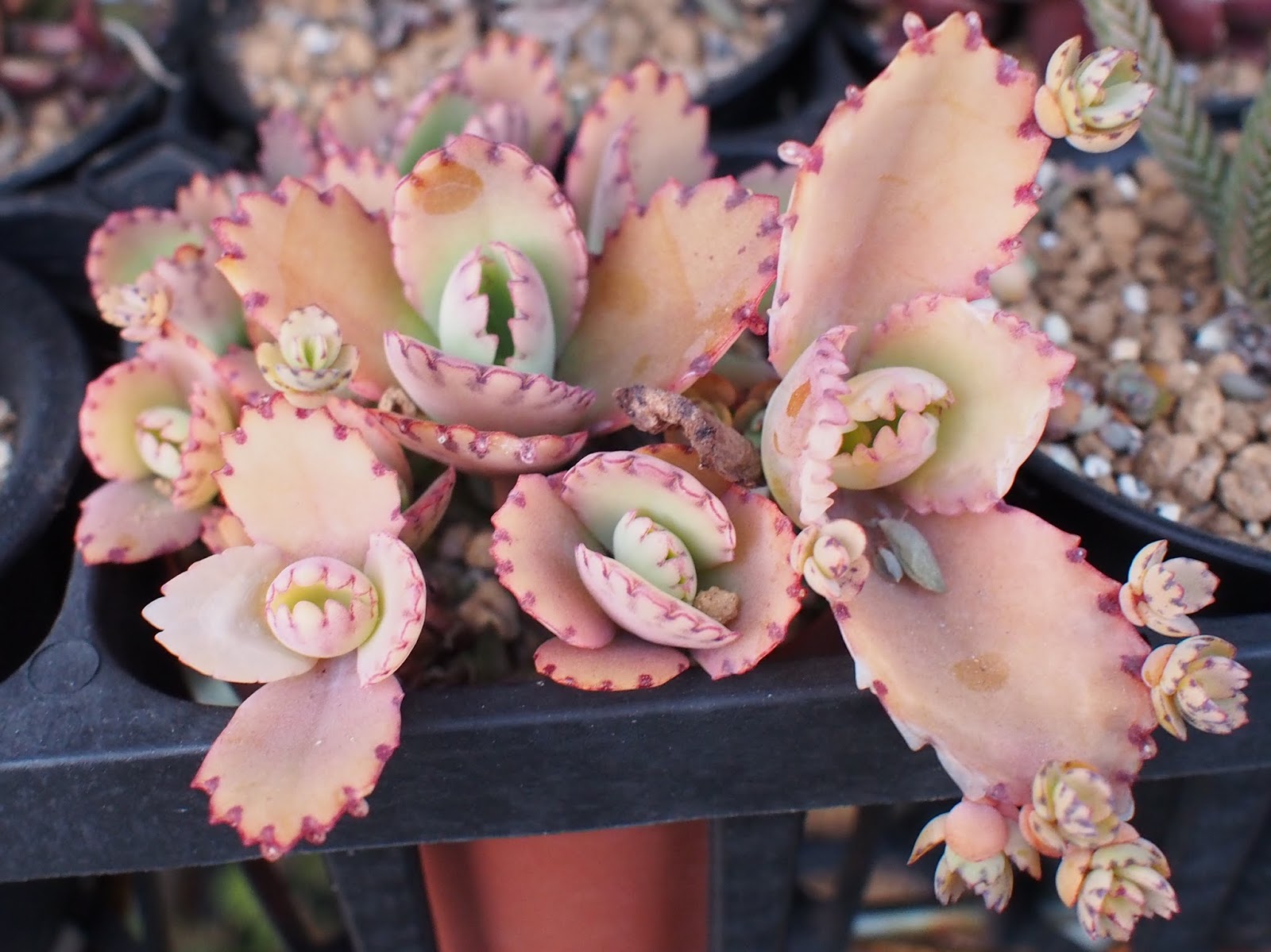子宝草 12月 25, 2013 ROUKA – Kalanchoe(Bryophyllum) ‘Crenatodaigremontianum’ –Kalanchoe laxiflora(Bryophyllum crenatum) × Kalanchoe daigremontianum(胡蝶の舞×錣弁慶(シコロベンケイ,子宝弁慶)) – memo –