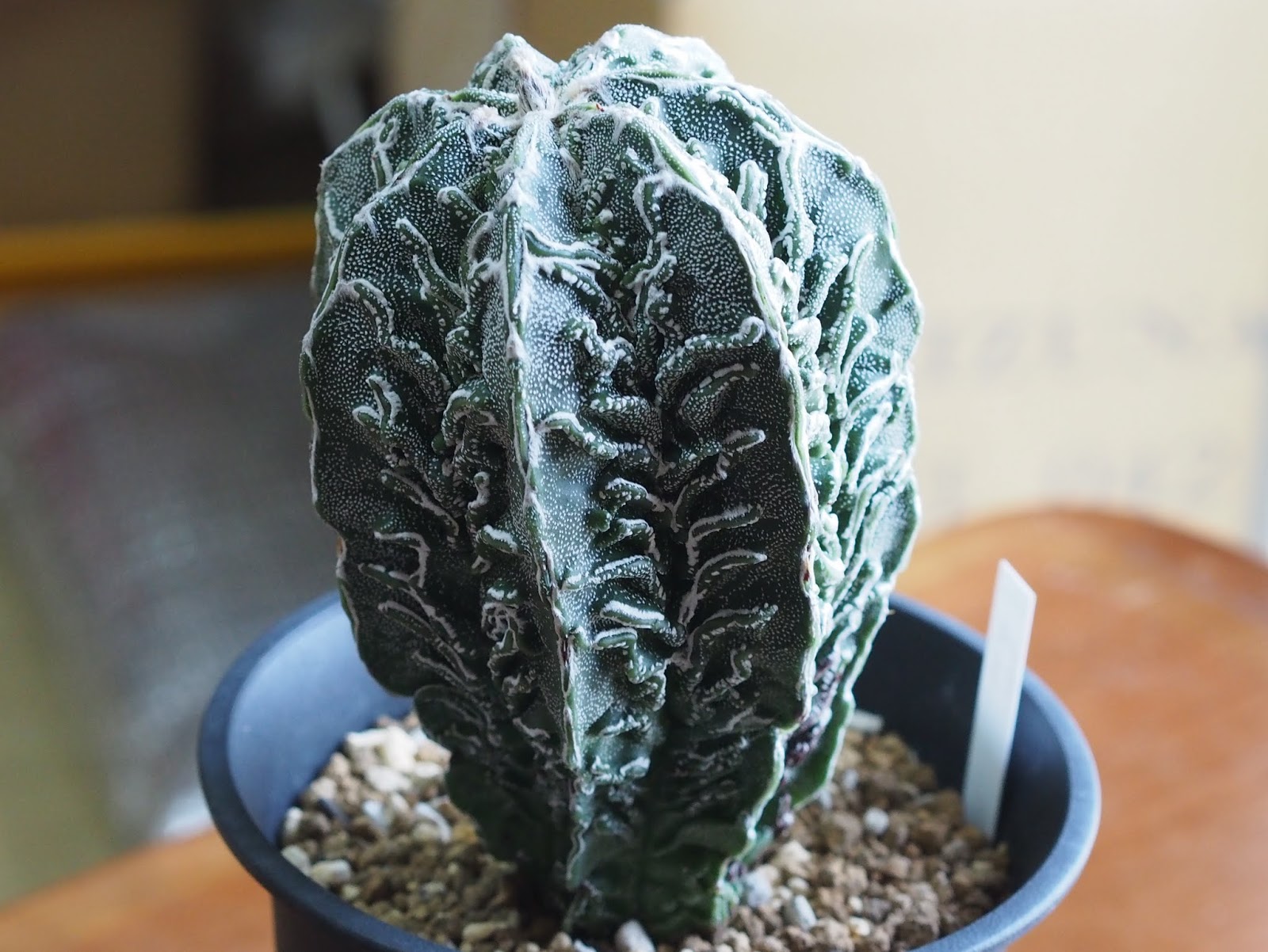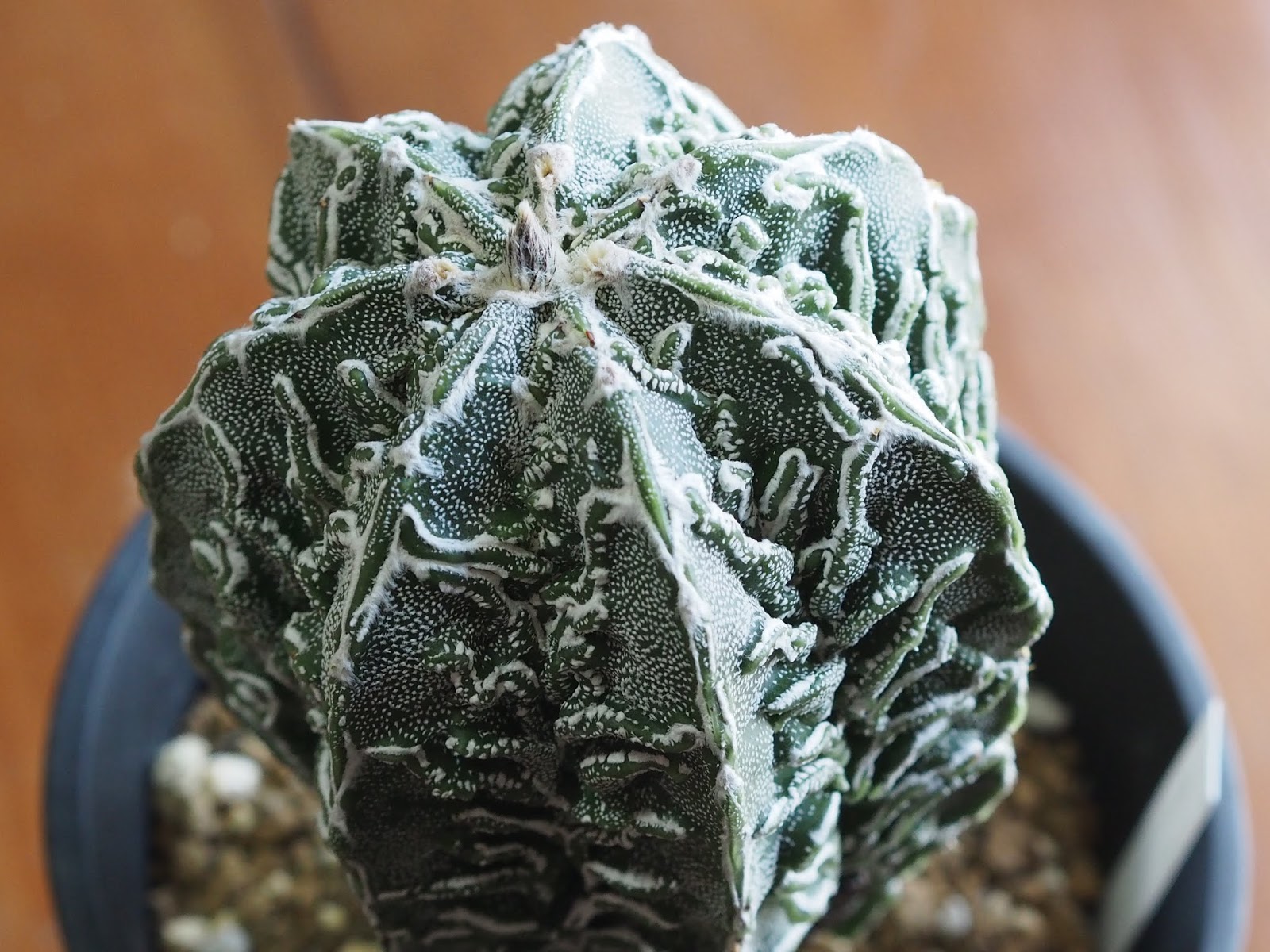 複隆磐石 8月 3, 2014 ROUKA – Astrophytum cv. ‘FUKURYU BANJYAKU’ – – memo –触るとわかる程度の小さい棘もあり、般若が入っていると思うが、よくわからない。おそらく複隆磐石(フクリュウバンジャク)と呼ばれるアストロだと思うが、白雲とか複隆鸞鳳と言われる物とどの辺で区別するのかよくわからない。蕾が膨らんできた。