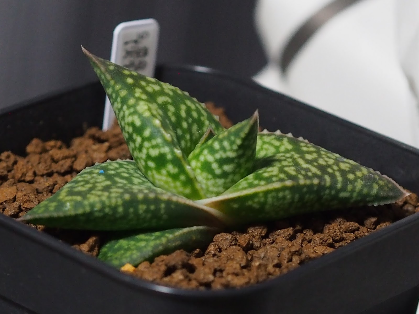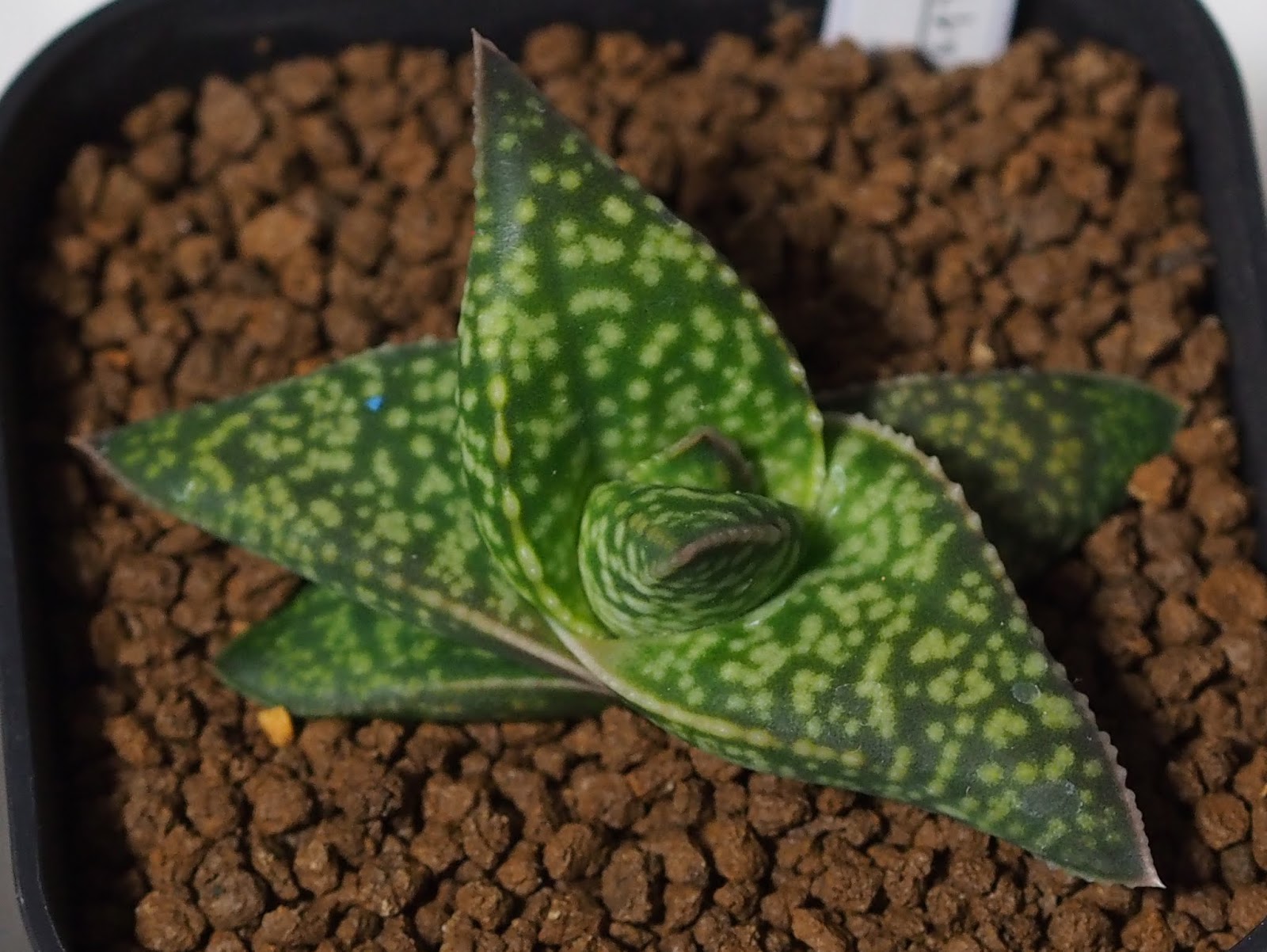 恐竜 × レッドドラゴン 1月 11, 2015 ROUKA – G. ‘Kyoryu’ × A. ‘Red Dragon’ – – memo –I.S.I.J.新年大会2015にて購入ガステリアhyb.の’恐竜’とアロエhyb.の’レッドドラゴン’のハイブリッド同士の交雑×ガステラロエ。実生ということで、これからどんな顔に育つかはわからない。