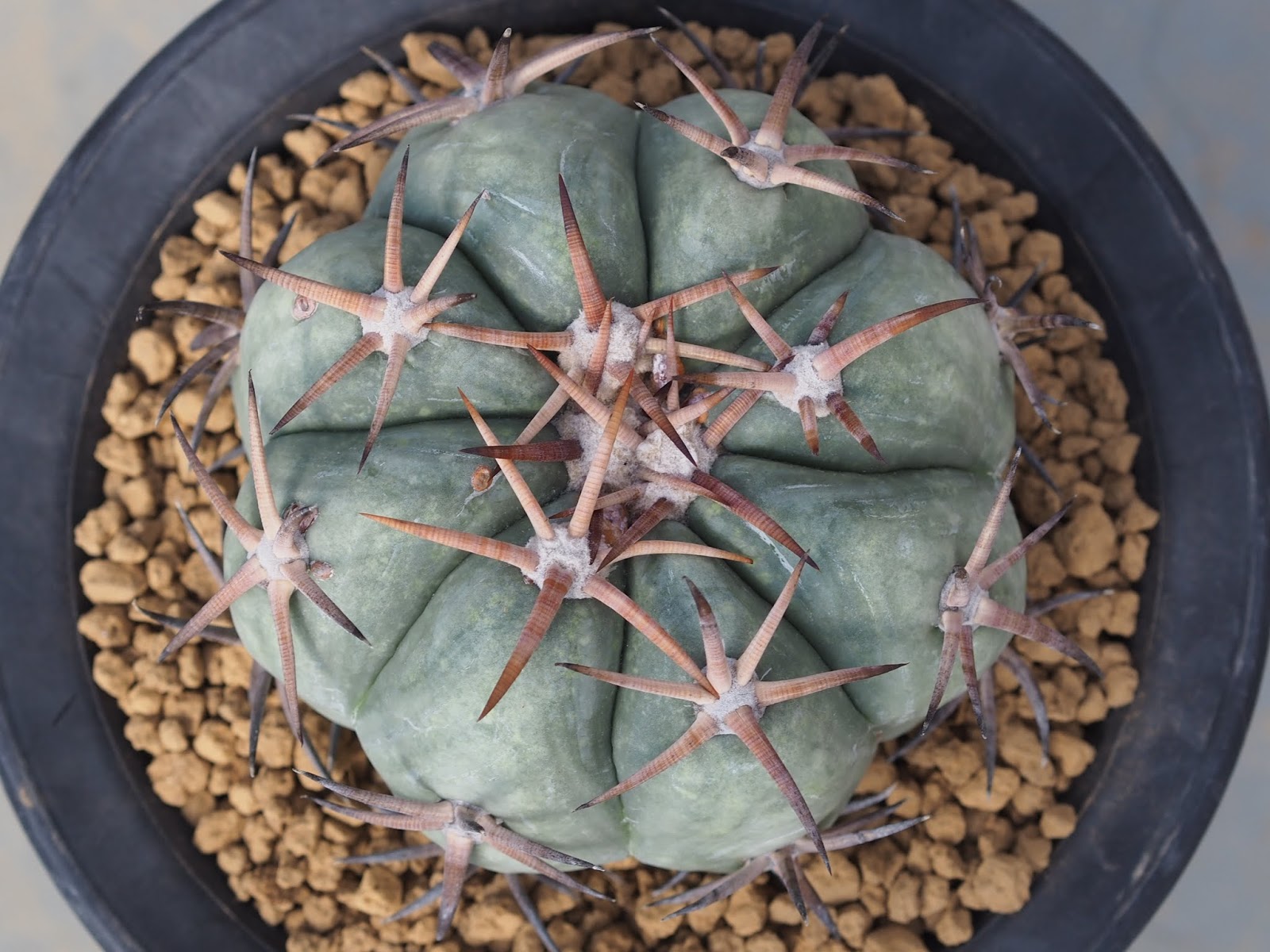花王丸 1月 31, 2015 ROUKA – Echinocactus horizonthalonius var. curvispinus – – memo –袖ヶ浦の接ぎ下ろし株で台付きとのこと。太平丸系のサボテンの違いはよくわからないが、花王丸は太く反る棘が特徴?学名は同じEchinocactus horizonthaloniusでも、太平丸・翠平丸・小平丸・尖紅丸・花王丸 など産地や棘の特徴などで色々名前が変わるよう。