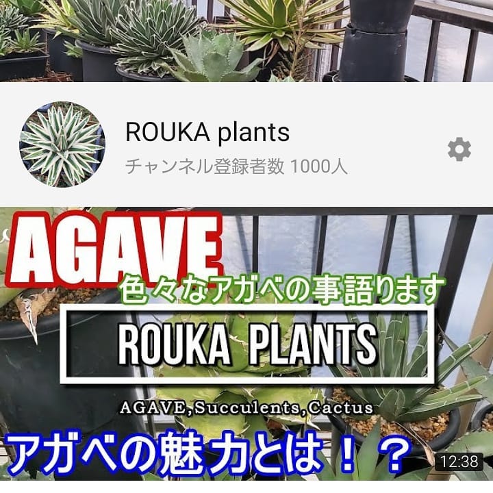 「ROUKA plants」が、チャンネル登録者数 1000人になりました! 8月 23, 2020 ROUKA YouTubeのチャンネル 「ROUKA plants」が、チャンネル登録者数 1000人になりました! アガベ動画で結構見てくれる方がいることにビックリしてますこれからもゆる〜く更新していこうと思いますので、今後ともよろしくお願いいたします