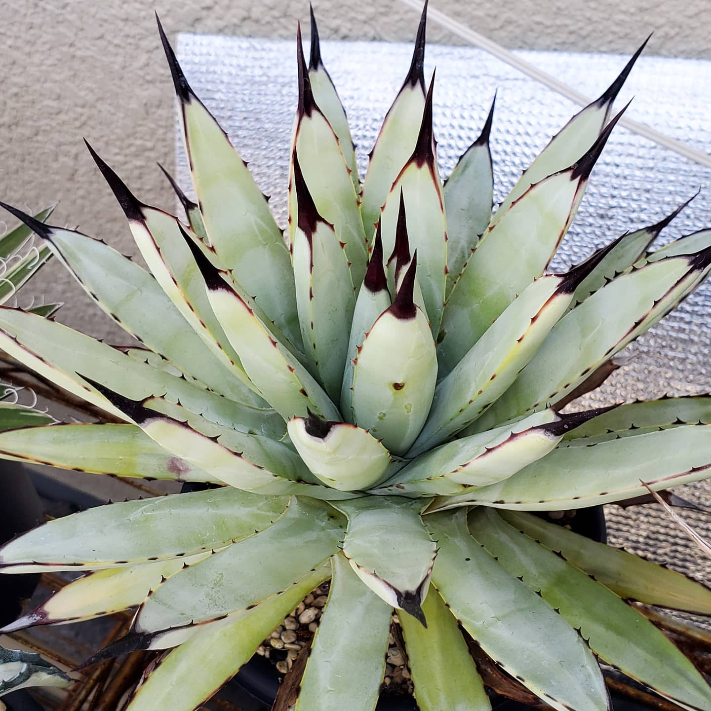 マクロアカンサの黒刺が美しい仕事始め。今年は挨拶周りもなしです。