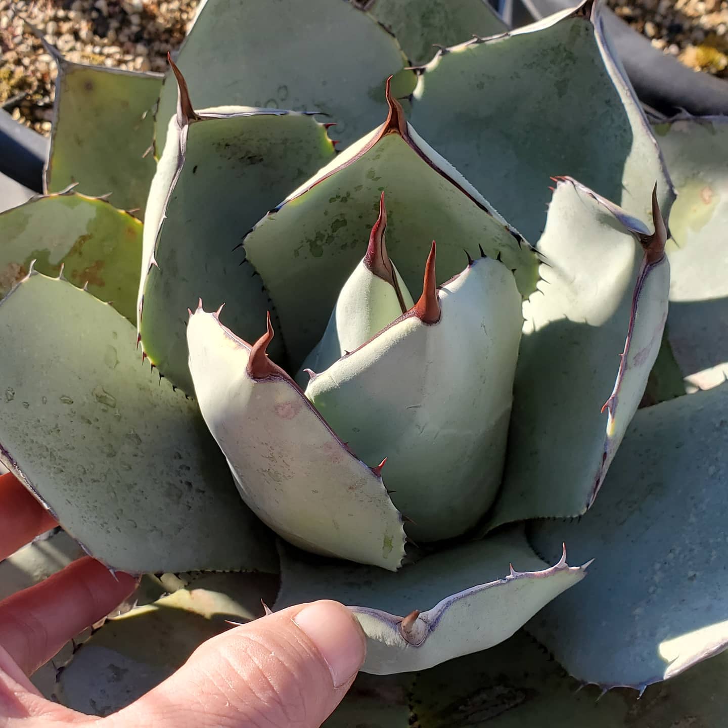 from Instagram 1月 13, 2021 ROUKA パリー・トランカータ屋外露天のトランカータは葉の表面に霜が薄ら氷を張るほどだが凍結は中々しない位は寒さに強い。でも、アガベって真冬をなんとなくこえられても、春先3月4月位に急に傷みだす事があるのでその辺安心できないっすね。蓄積したダメージが一気に出るように茶色く枯れ上がってきたりとか。今年は色々と無傷ではいかない株が多そうで怖いな。。。