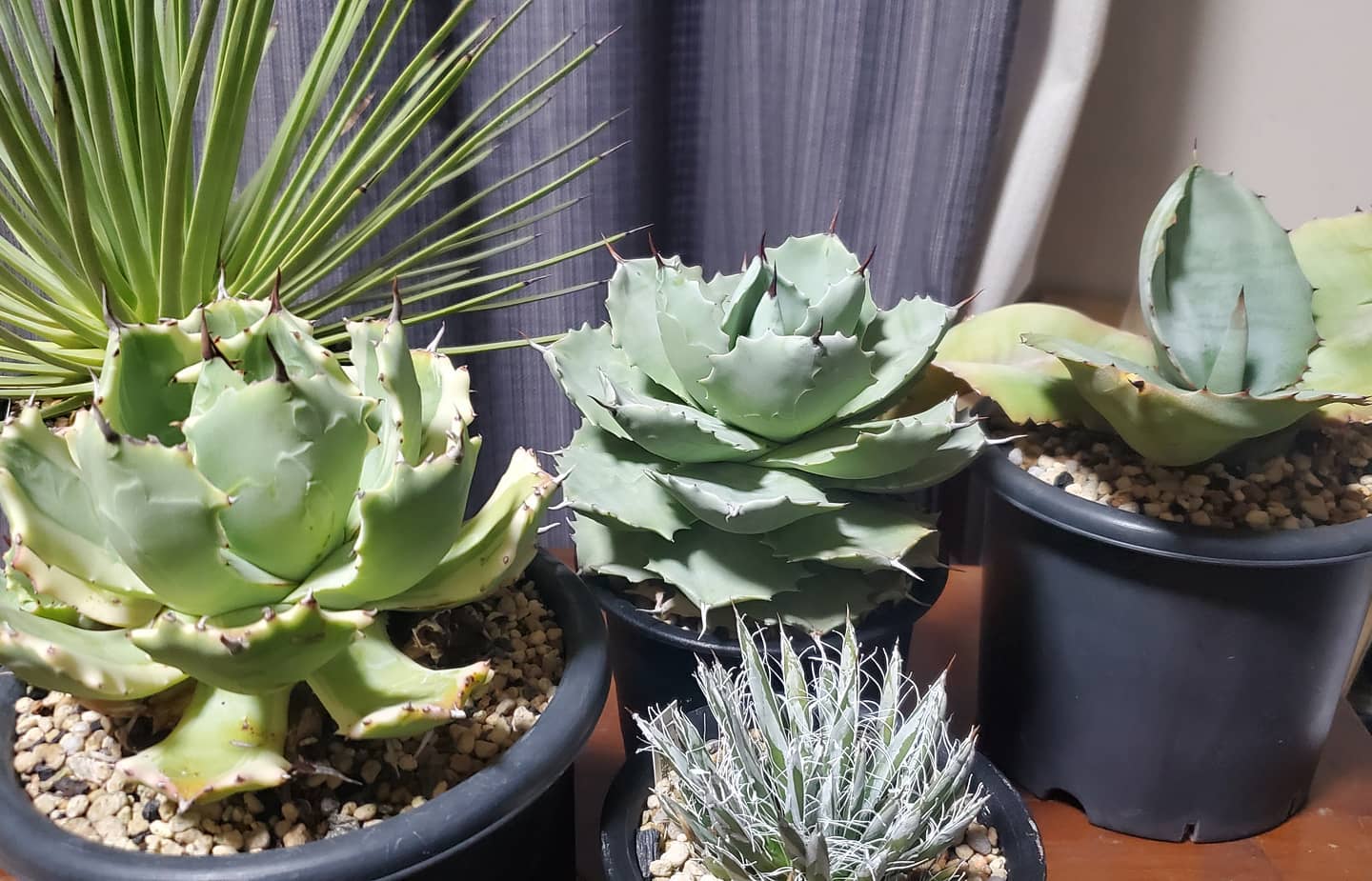 今夜のYouTubeライブのためにアガベを数鉢屋内にセッティング。我が家で屋内に植物を入れるのは非常にレア