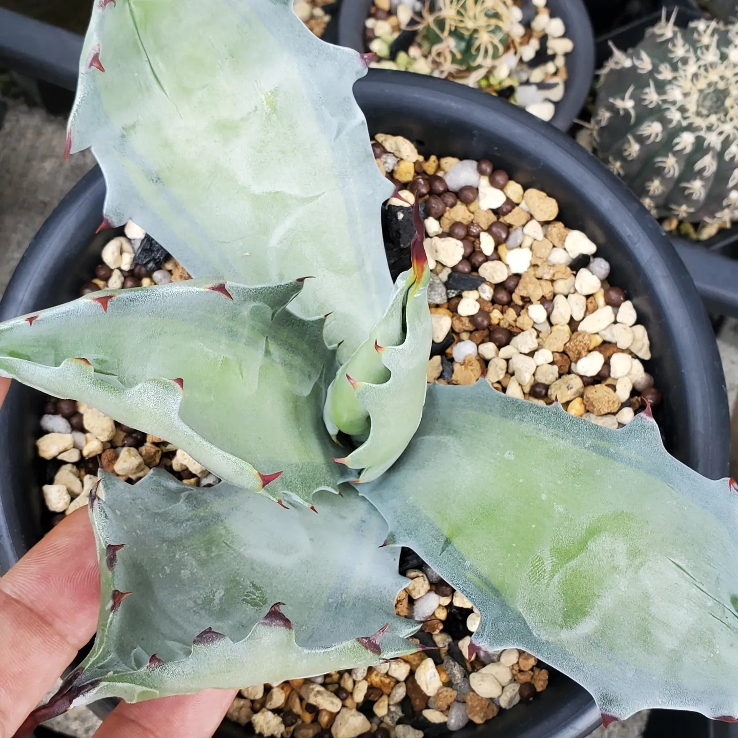 コロラータ(黄中斑) 8月 12, 2021 ROUKA アガベ コロラータ 黄中斑以前だいぶ虫にやられて、汚くなった葉を更新更新でようやく見れる姿に戻ってきた胴切りして根も作り直して完全に再スタート。ほぼ消えてた斑も戻ってきたなので多分超久々の登場w